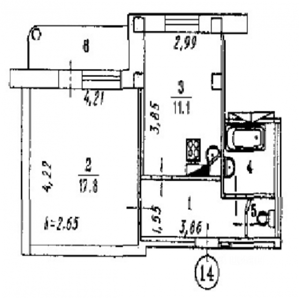 — Площадь кухни: 11,1 кв.м.