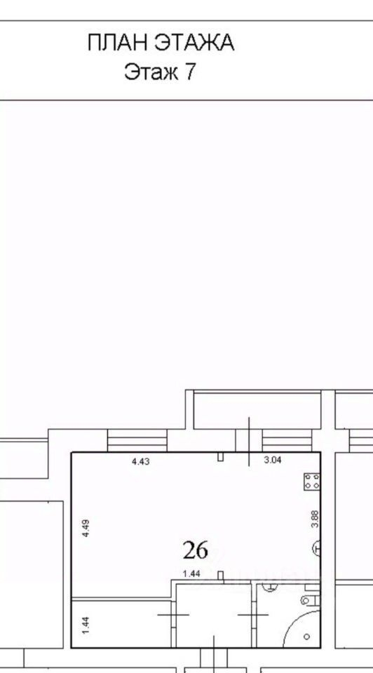 - Площадь квартиры 44 кв м, два окна с балконом, при желании можно сделать евро 2х комнатную квартиру