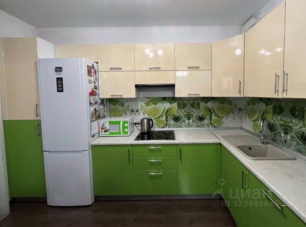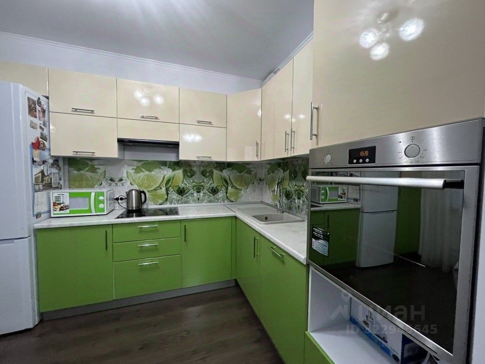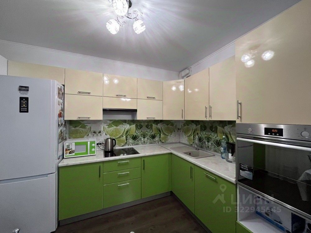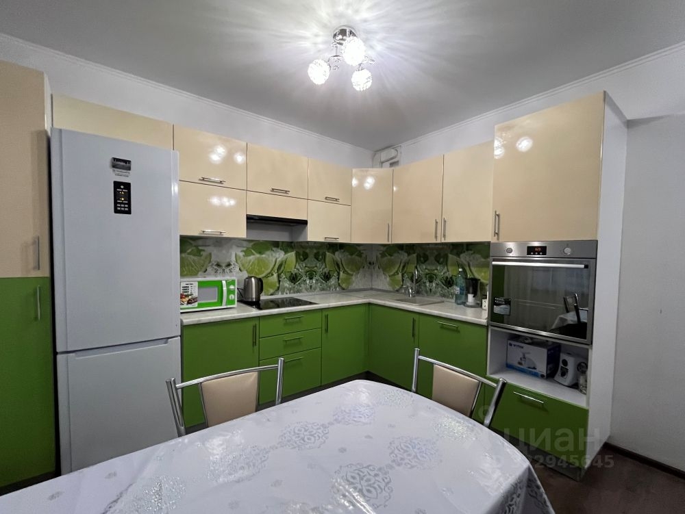 Квартира полностью укомплектована всей необходимой мебелью и электробытовой техникой, кухонным гарнитуром с обеденной зоной ( посудомоечная машина, встроенный духовой шкаф и варочная панель встроены ).