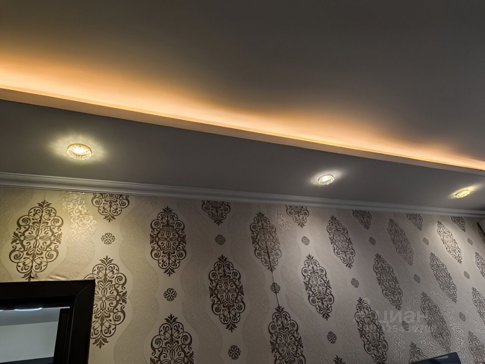 Гостиная: пол ламинат, многоуровневый потолок с точечными светильниками с выводом под большую центральную люстру, кондиционер Electrolux (полностью обслужен). Огромный встроенный шкаф-купе с 3-я секциями.